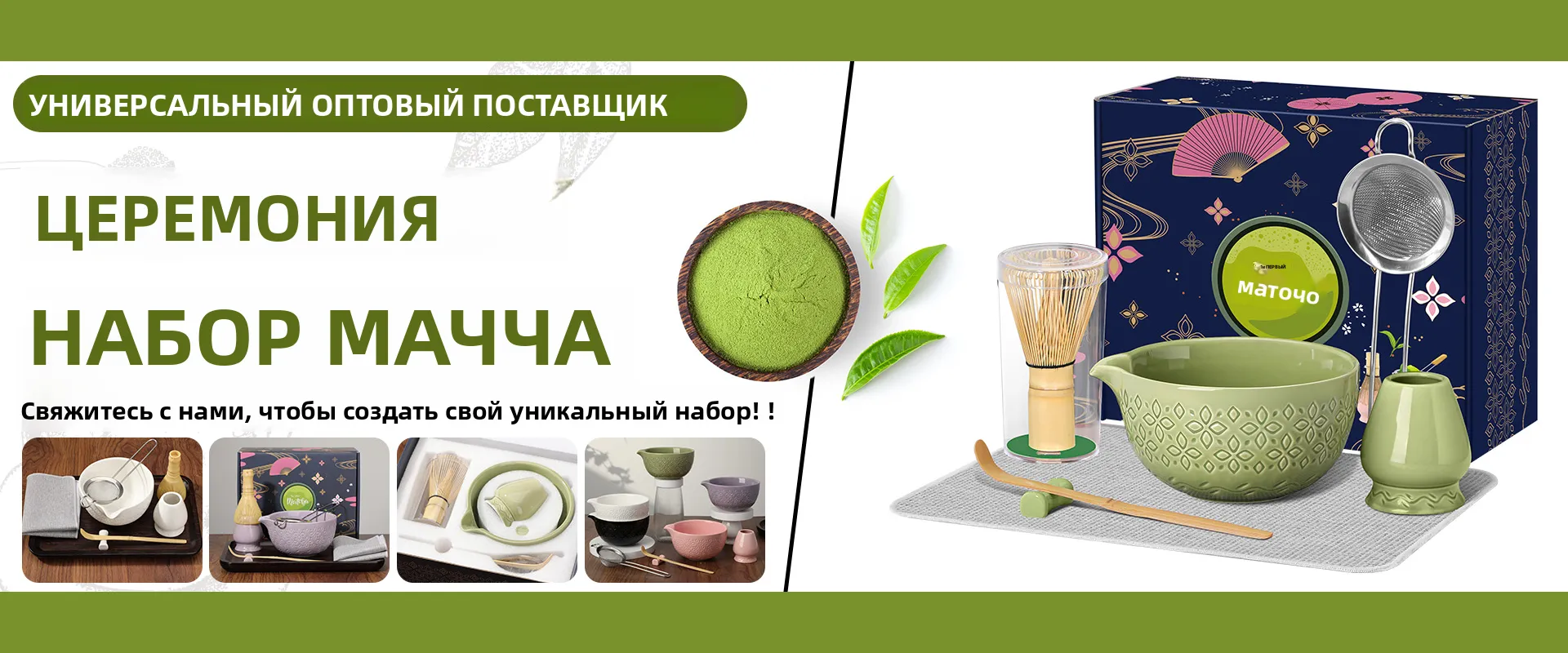 Набор для приготовления матча напрямую от производителя・Различные конфигурации・ Поддержка брендирования・ Отгрузка со склада в течение 7 дней Описание продукта: Контроль качества: Приспособления для взбивания изготовлены из пищевых материалов, чаша выполнена из высокотемпературной керамики, не содержит вредных веществ, соответствует коммерческим стандартам безопасности. Подходит для использования в кафе, кондитерских, в качестве корпоративных подарков и для личного применения. Индивидуализация: Возможно нанесение логотипа на набор, изменение дизайна или цвета чаши. Минимальный партионный заказ – 50 наборов. Идеально для брендинга и корпоративных заказов. Сотрудничество и поддержка: Предоставляем сертификаты качества продукции, возможна проверка образцов (доставка оплачивается получателем). Сначала проверяете качество – затем оформляете заказ. Постоянные клиенты получают приоритетный доступ к новым квартальным коллекциям для тестовых продаж, что позволяет оставаться на волне рыночных трендов.